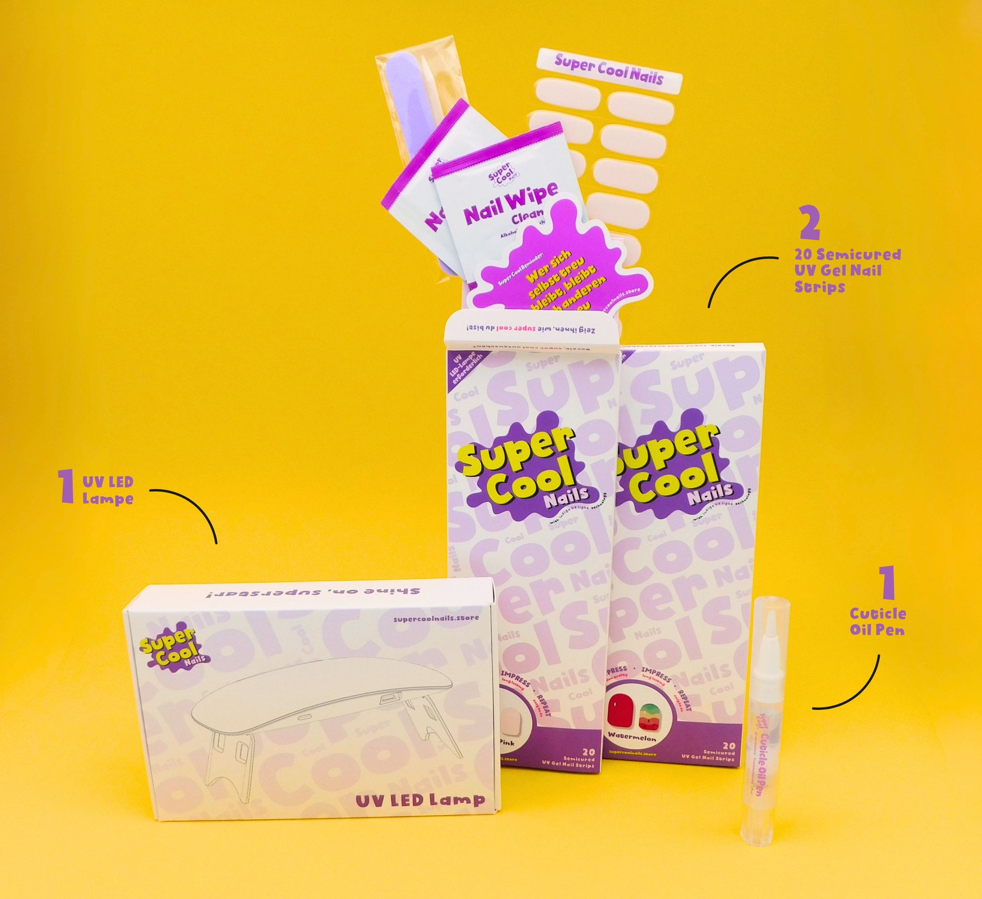 Schluss mit Salon, Zeitverschwendung und langweiligen Nägeln. Hier bekommst du alles, was du brauchst: 2x deine Lieblings-Nails, UV-Lampe + Cuticle Oil Pen– und das zu einem Preis, der fast schon frech ist.